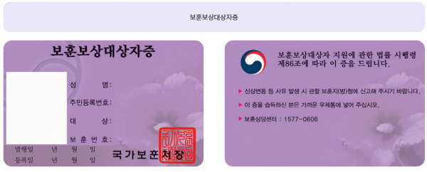 8.새로운 "국가보훈등록증"도 어떻게 뒷면이 어떻게 나올지 궁금합니다.