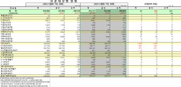 10번 글쓰기=>대한민국 국가보훈부 통계자료 *보훈대상자 현황* 83만4068명 [2025년12월31일 기준]