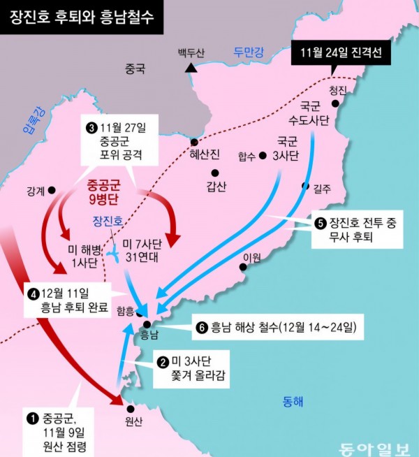 5번 글쓰기=>한국전쟁 長津湖 전투 미군 제10군단 중공군 제9병단 후퇴와 철수작전 [1950년11월26일~~1950년…